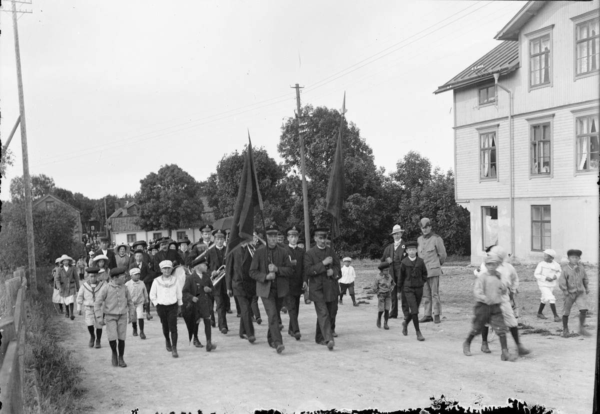 "Frälsningsarméns demonstrationståg uppför Rådmansgatan", Östhammar, Uppland