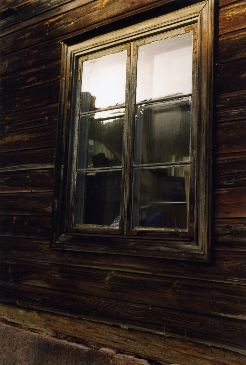Titel: Kolbäck sn, Hässelby. Detaljbild av fönster i manbyggnadens södra gavel.
