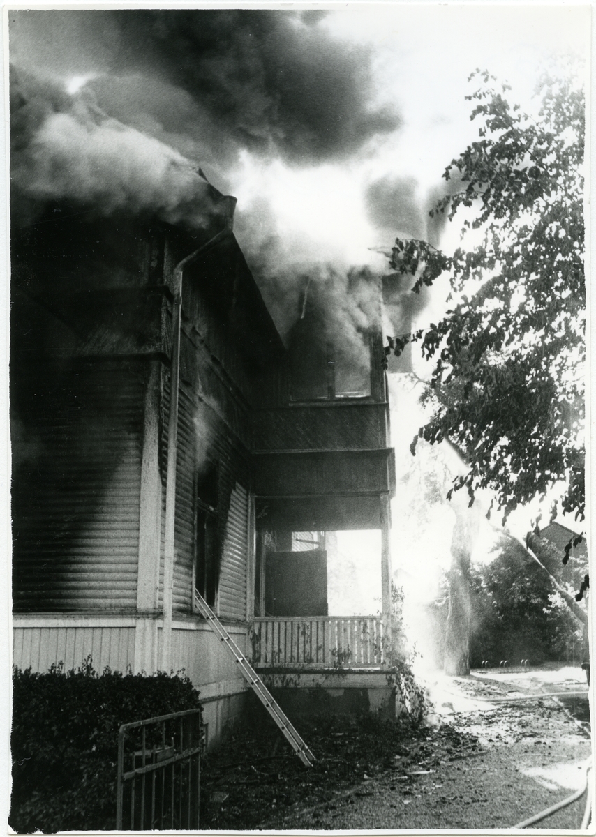 Titel: Lustigkulla. Brand i bostadsbyggnad, Lustigkullagatan 5. 6 juni 1973.