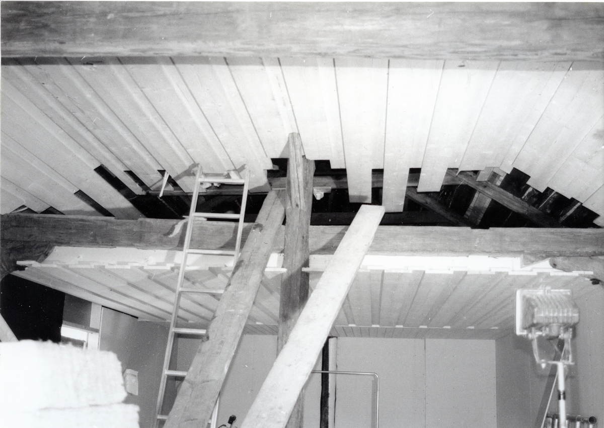 Uppspikning av innertak i matsalsdelen.