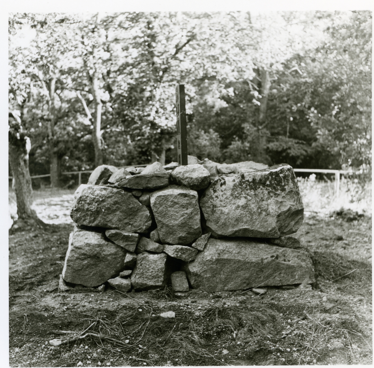 Titel: Rytterne sn, Västerås. Milstolpe efter flyttning, 1972.
