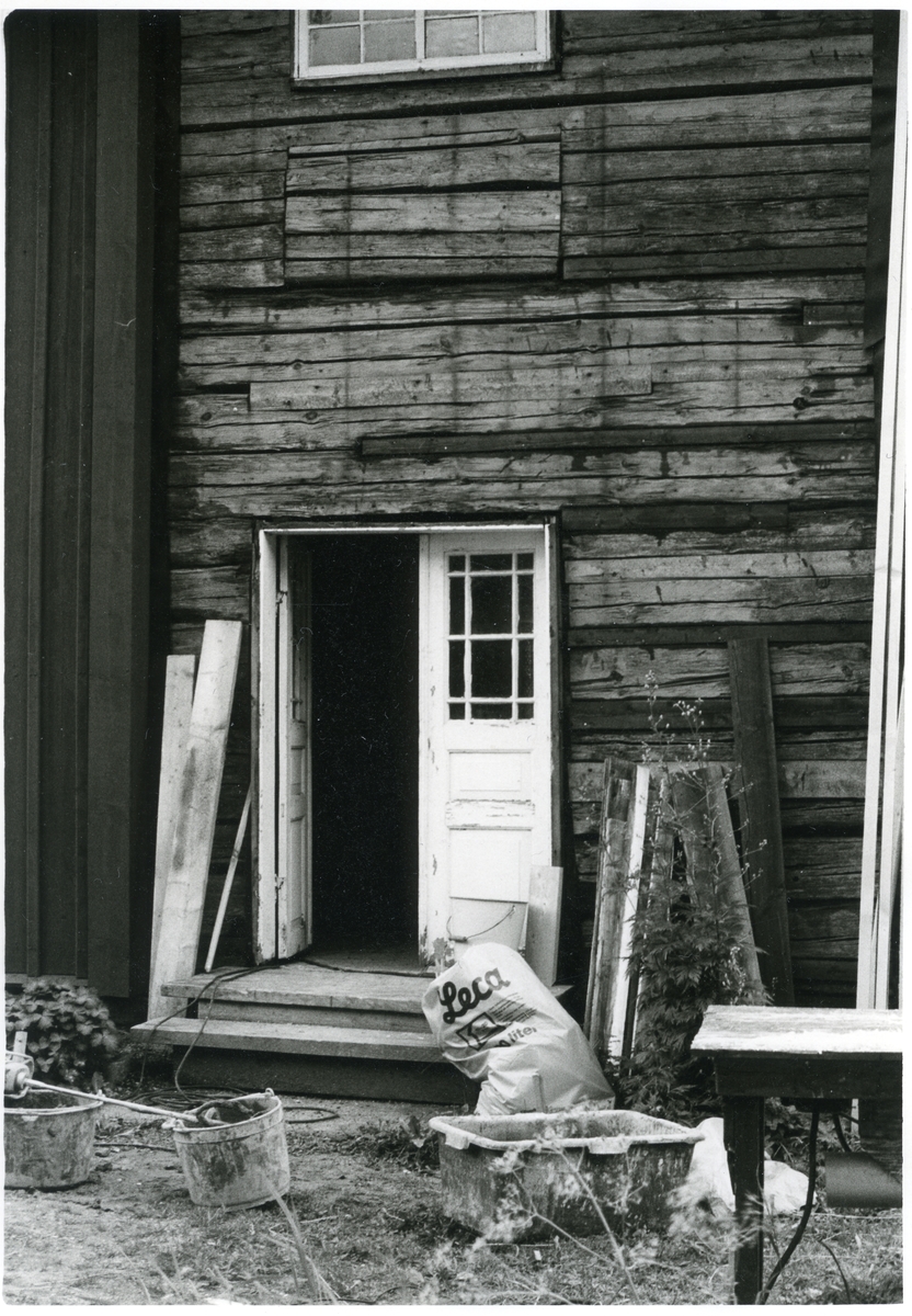 Götlunda sn, Nannberga. Byggnadsfasad med pardörr. Renovering och tillbyggnad.