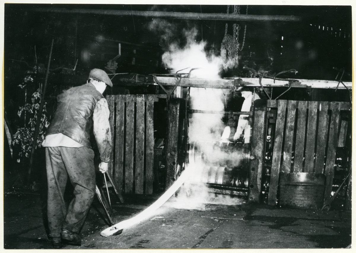 Karmansbo smedja. Smältare Olle Merkell. Smältan valsas. 1956.