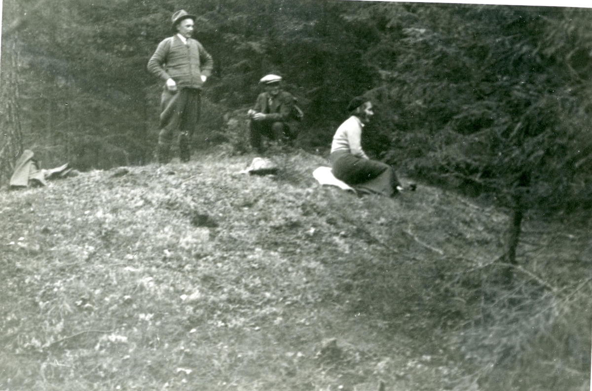 Två män och en kvinna på slagghög.