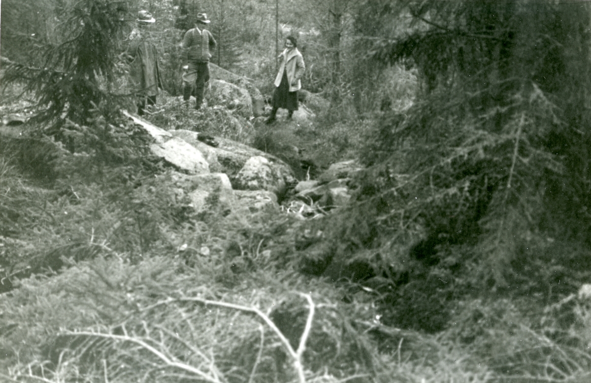 Två män och en kvinna står vid Hyttbäcken.