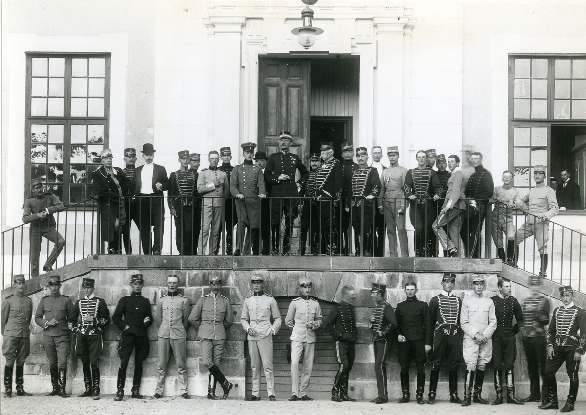 Gruppfoto av officerare på trappan till Strömsholms slott.