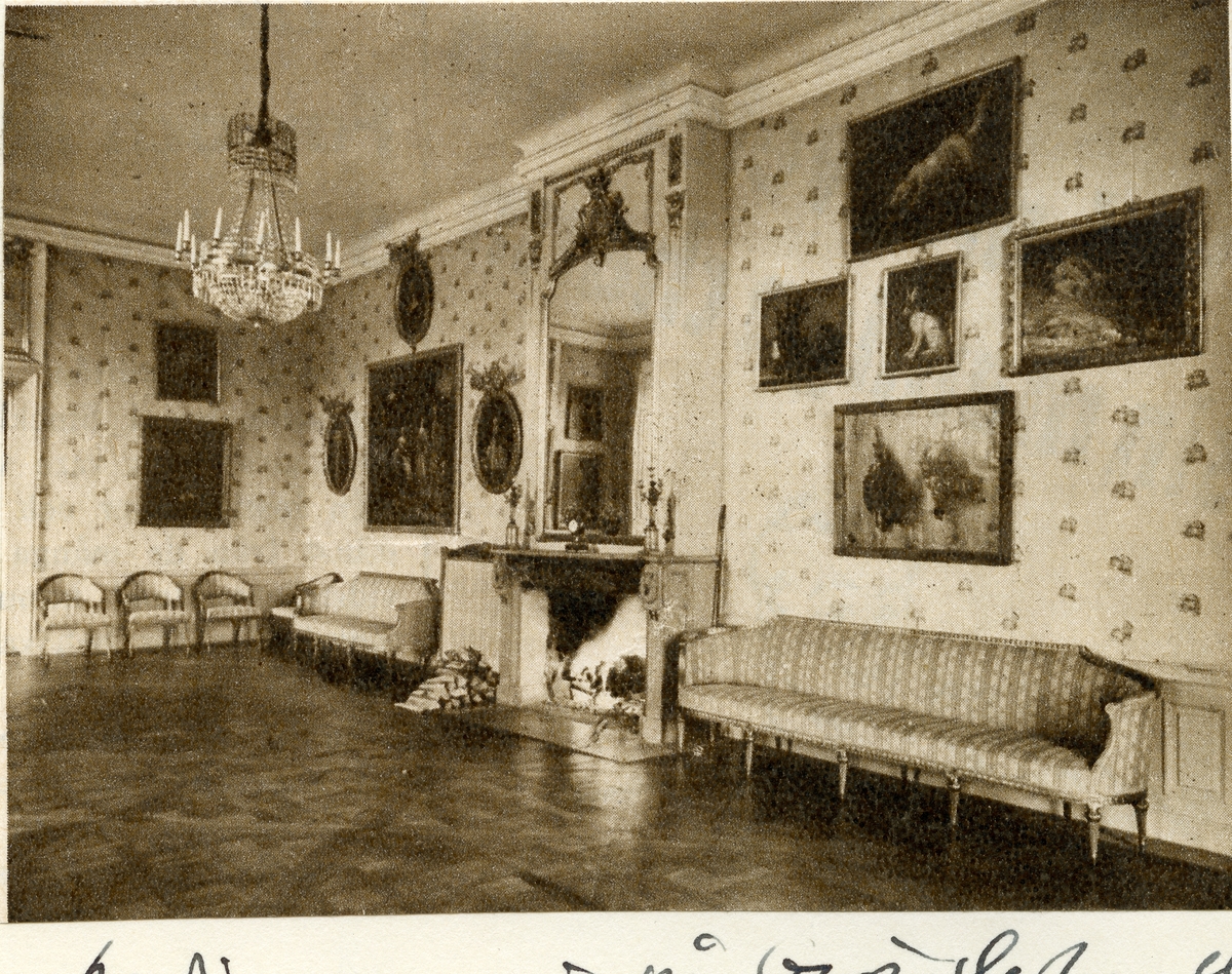 Slottets audiensrum, med soffor, kristallkrona, spegel, tavlor m.m.
