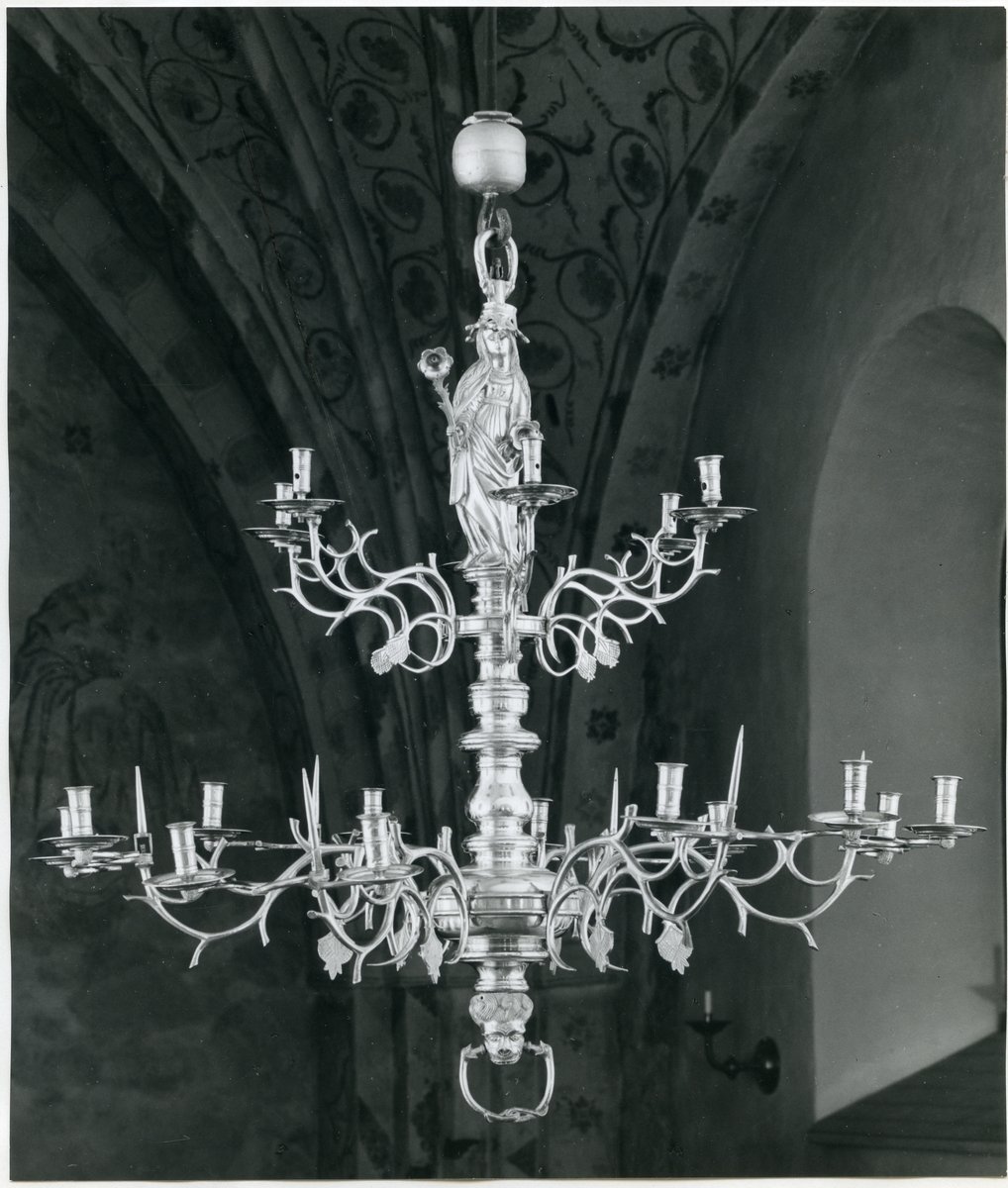Björksta sn, kyrkan. Ljuskrona av mässing.