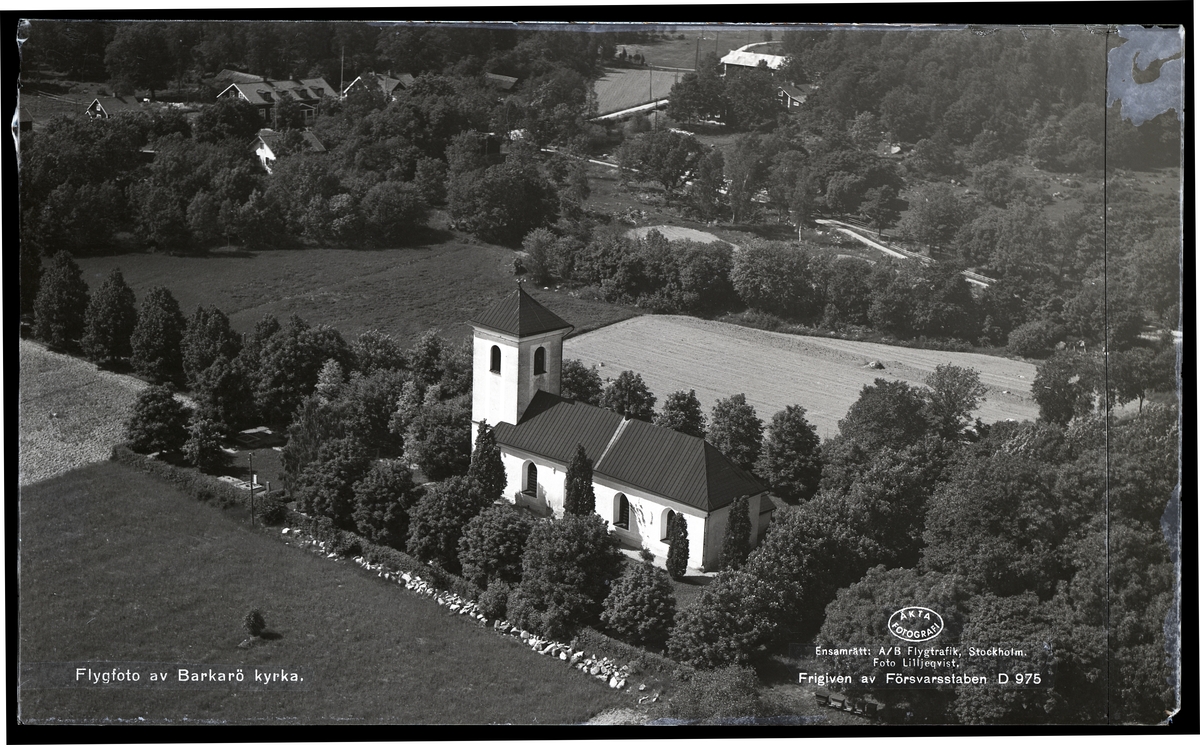 Flygfoto över Västerås-Barkarö kyrka i Barkarö.