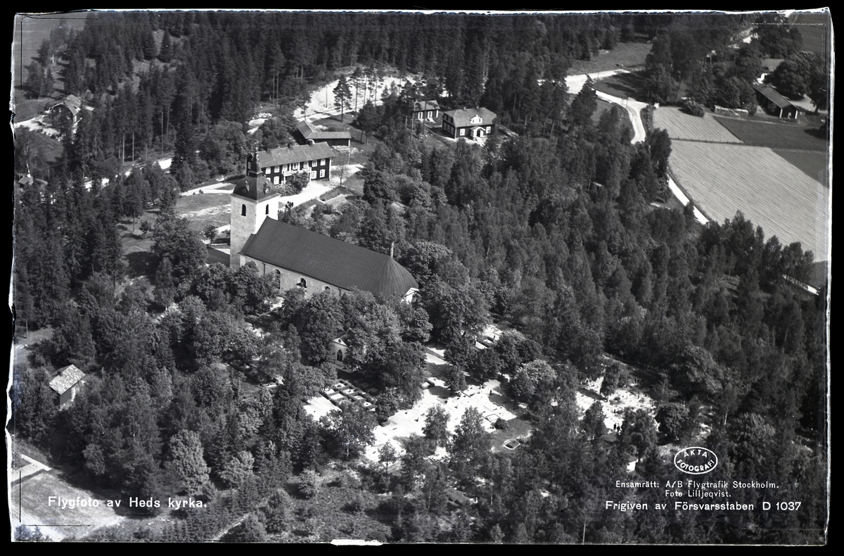 Flygfoto över Heds kyrka, Hed, Skinnskatteberg