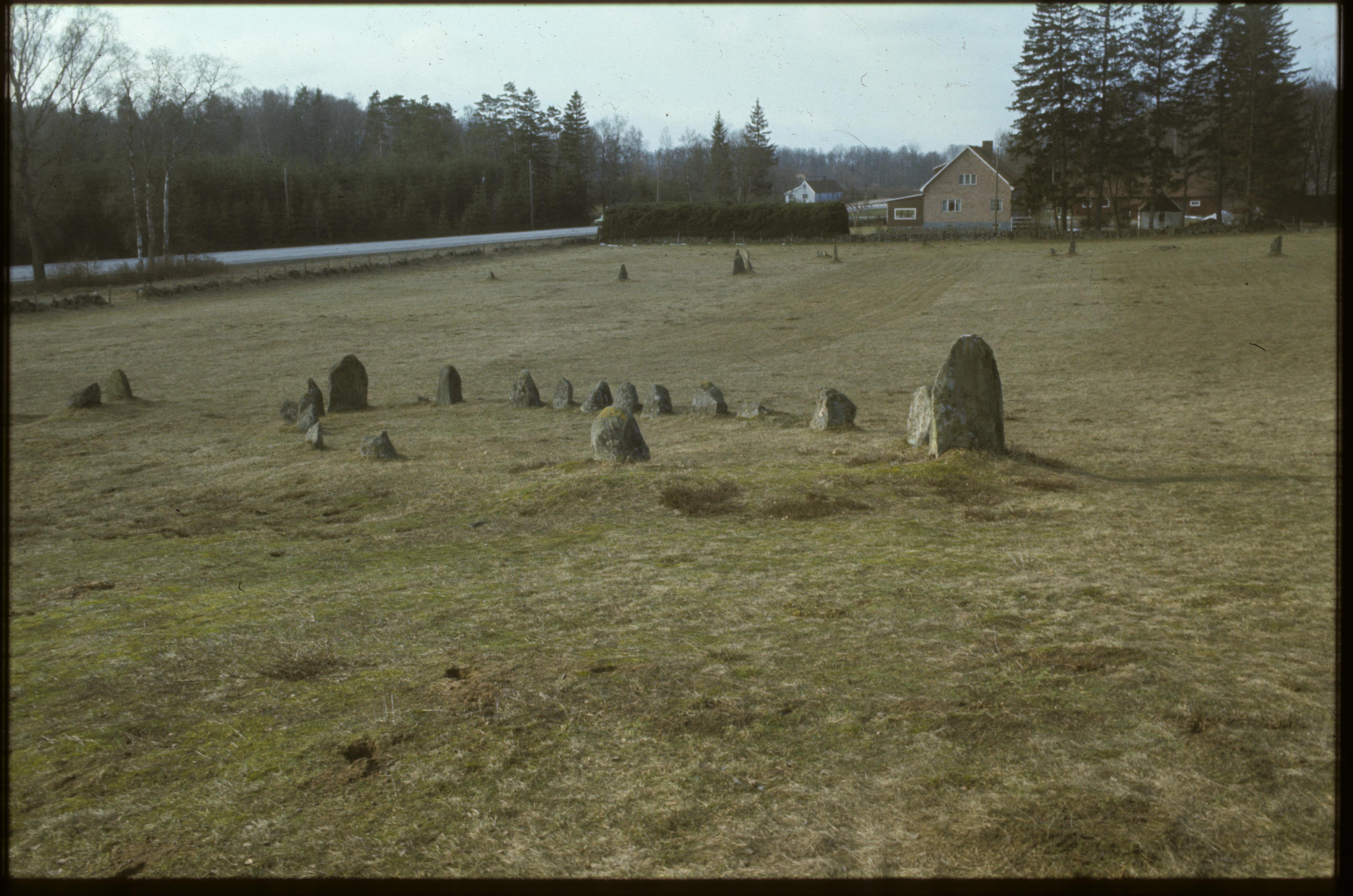 Norra Mellby 1:1. Gravfält, 250x150 m (SV-NÖ), bestående av ca 200 fornlämningar. Dessa utgöres av 15 skeppssättningar, 2 rektangulära stenkretsar och ca 183 resta stenar.