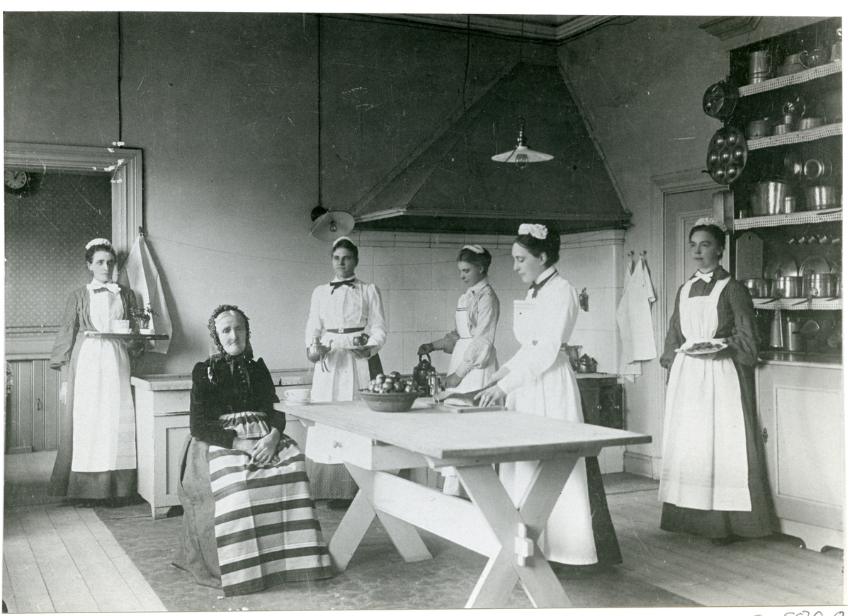 Köksbestyr i herrgårdsköket, början 1900-talet.