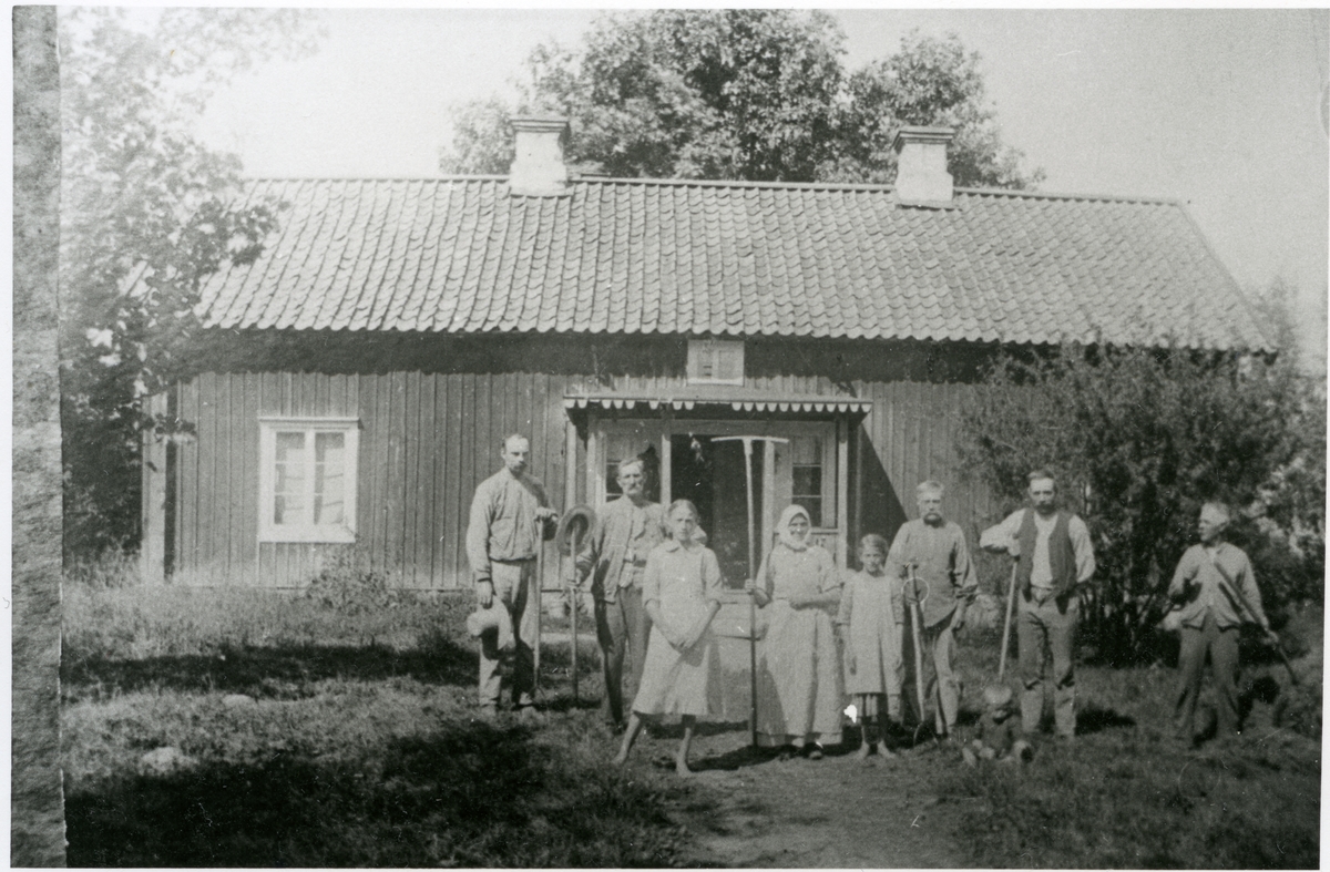 Ekbacken? Barn och vuxna framför byggnaden, 1916.