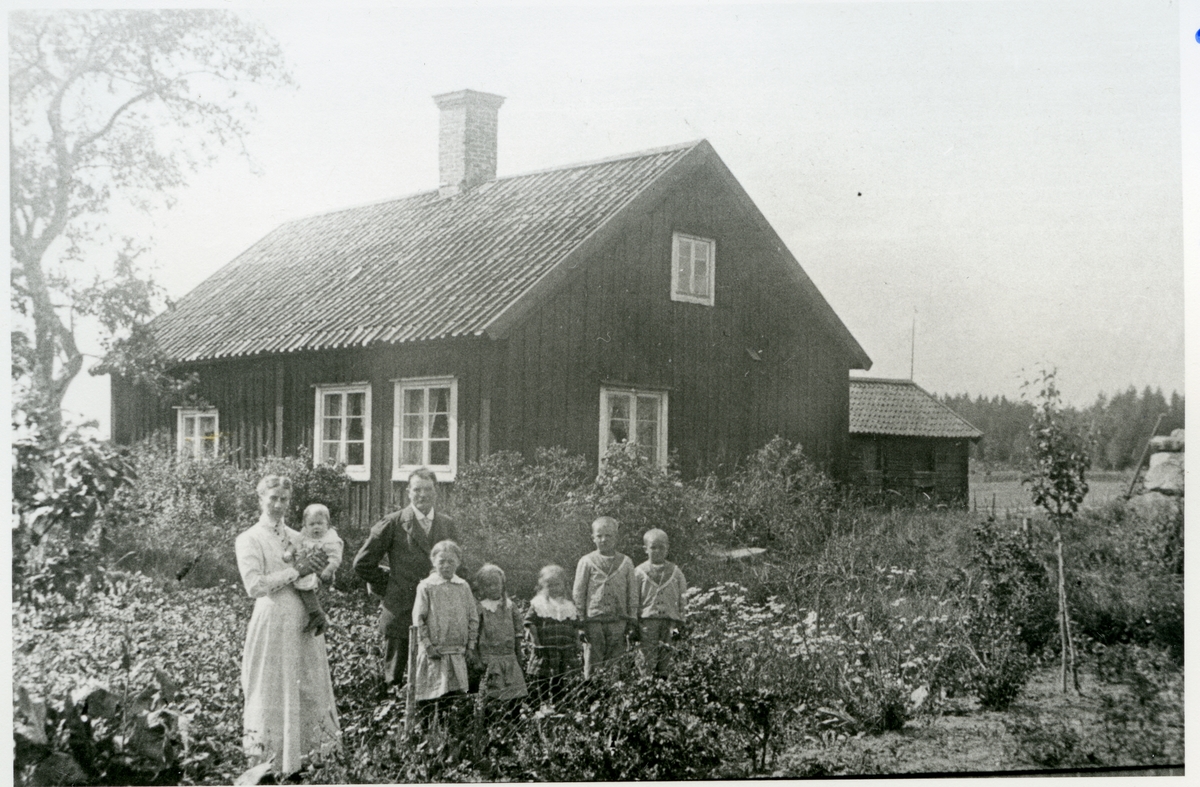 Stenby 1:1. Familjen Eriksson framför bostaden, 1917.