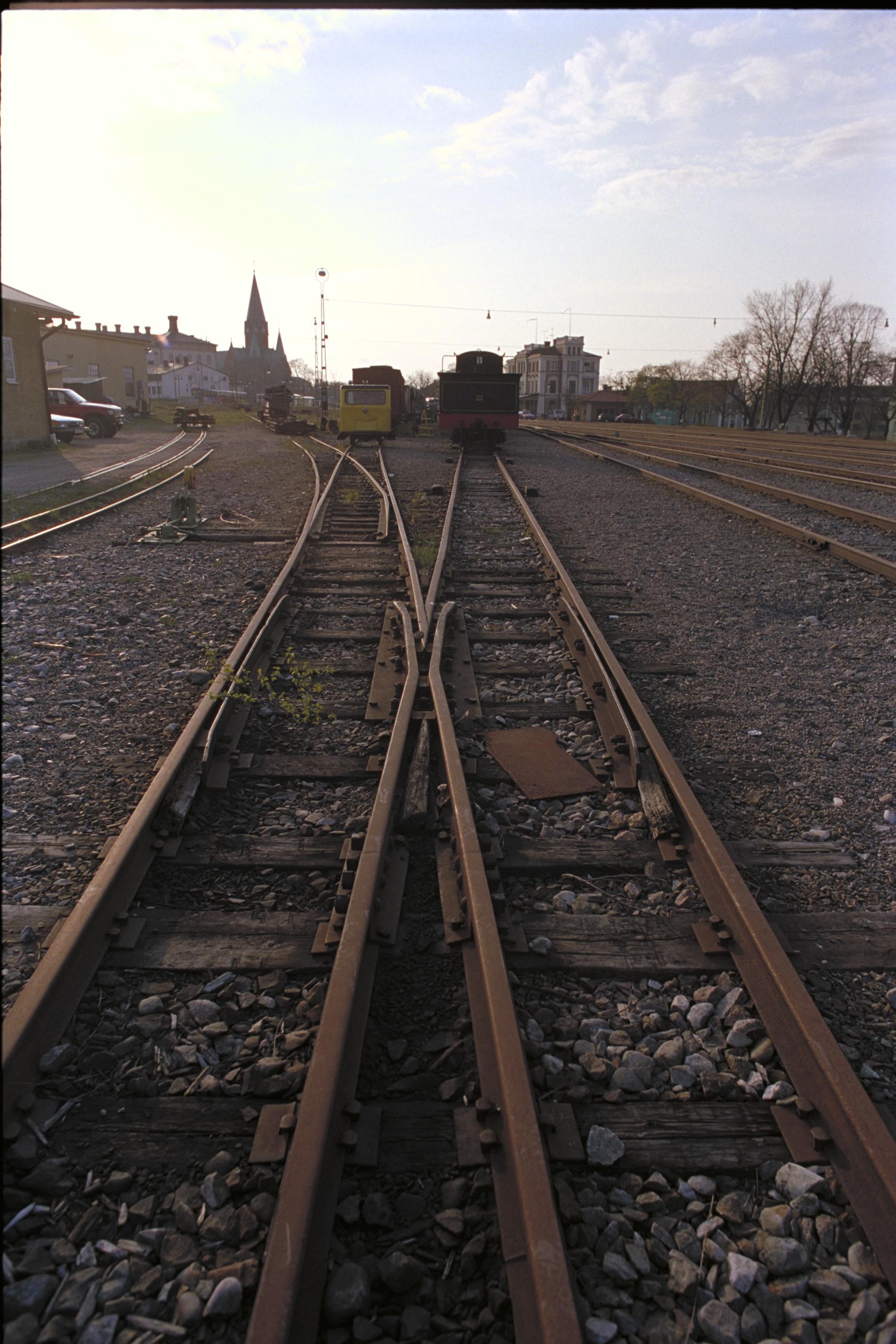 Smalspårsbangården i Västervik. Järnvägsräls.
