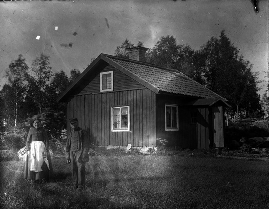 Paret Bergs vid sin nya stuga, Lillhärad sn, Litslunda.