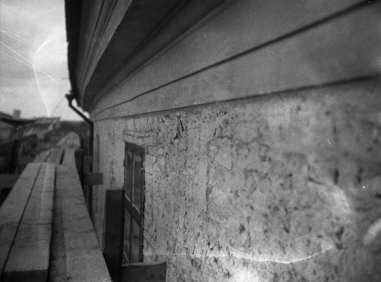 Titel: Utvändiga restaurationsarbeten av Västerås slott, utförda av arkitekt Erik Hahr omkring 1930 i Västerås.