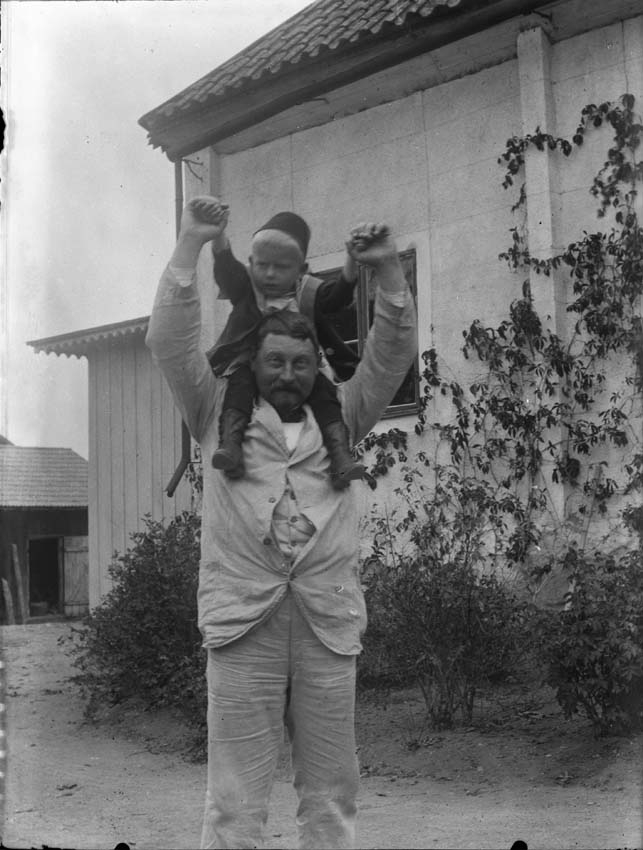 Man med barn på axlarna, Lillhärad, ca 1910.