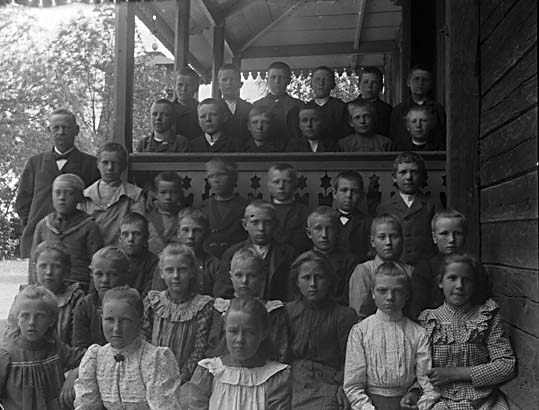 Skolbarn med läraren A. F. Karlsson.