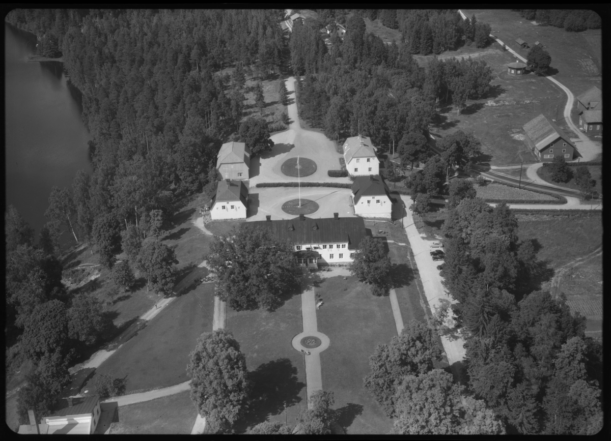 Flygfoto över Volvoskolan / Karmansbo herrgård, Karmansbo.