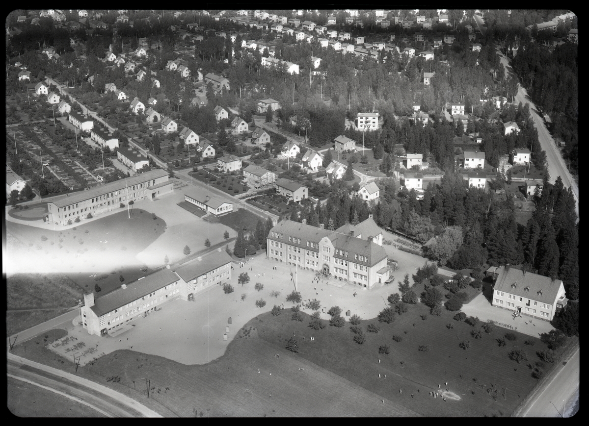 Flygfoto över skolcentrum, Risbroskolan, Fagersta.