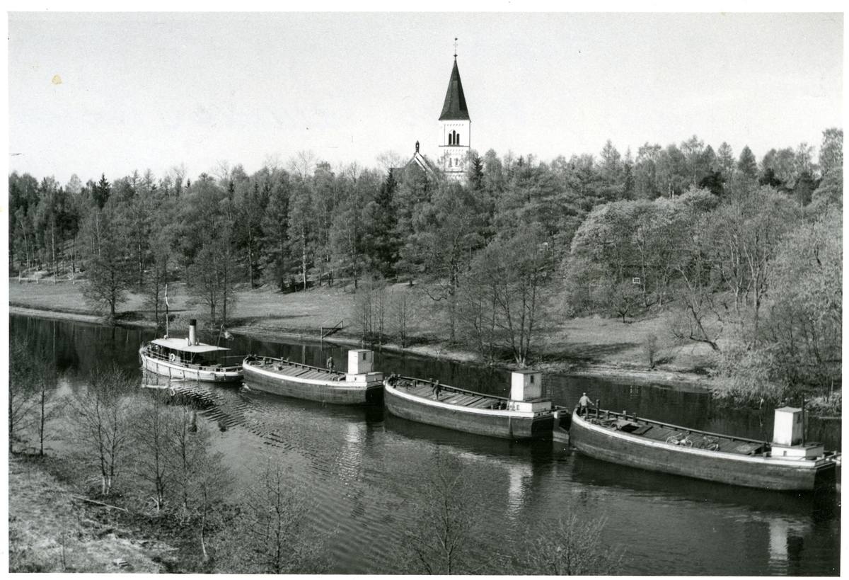 Surahammars bruk. Fraktpråmar på Strömsholms kanal, 1950.