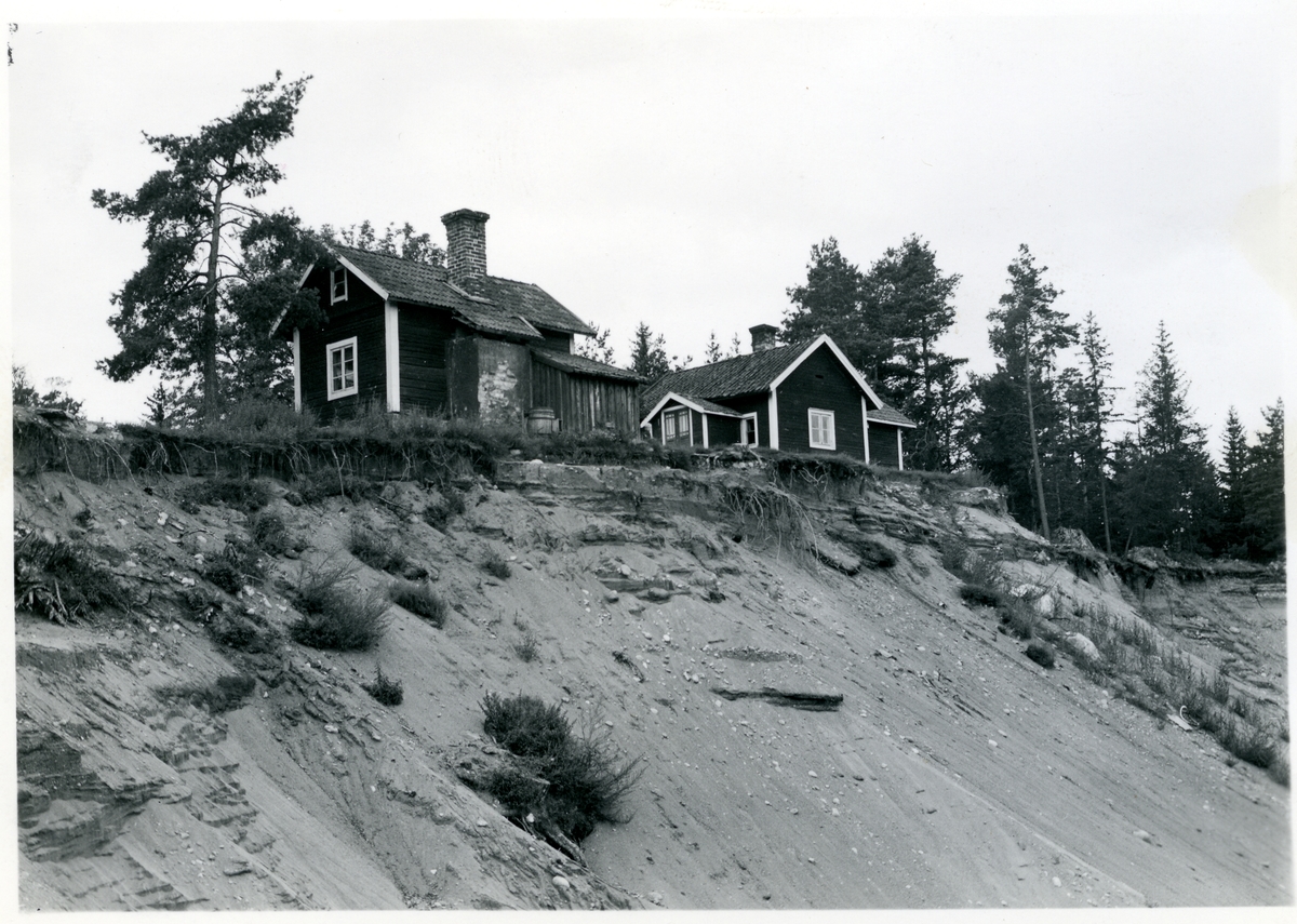 Grustag på Badelundaåsen. Bostadshus på kanten.