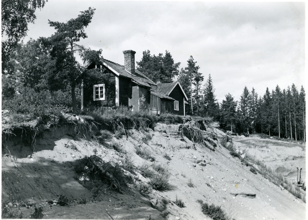 Grustag på Badelundaåsen. Bostadshus på kanten.