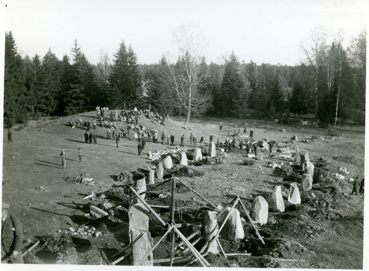 Anundshögsamrådet inför restaurering av skeppssättning.