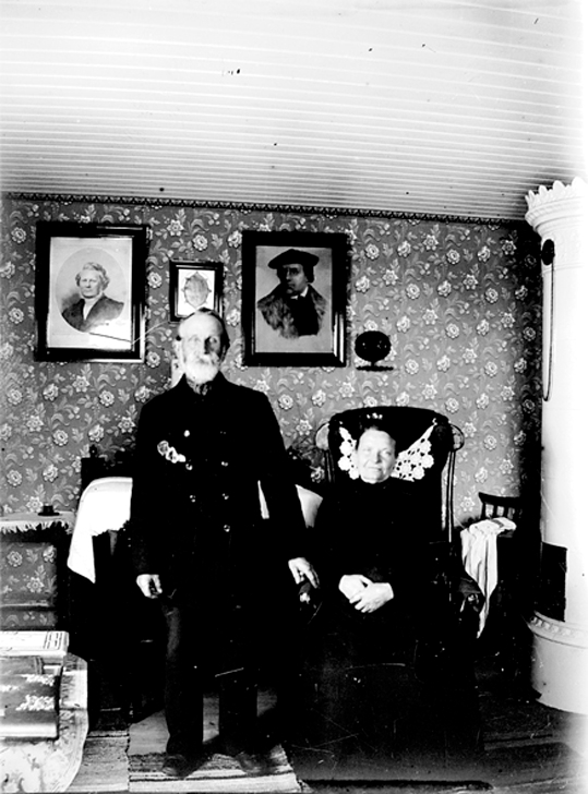 Äldre par fotograferat inomhus, Riddarhyttan.