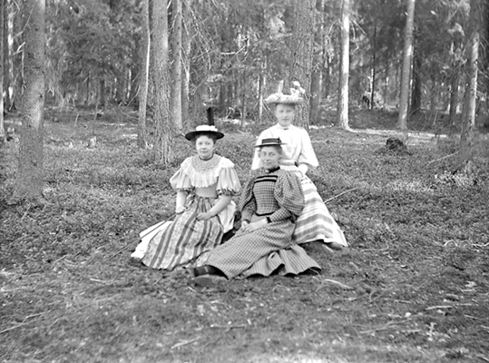 Grupporträtt av tre kvinnor i skogen, Riddarhyttan.