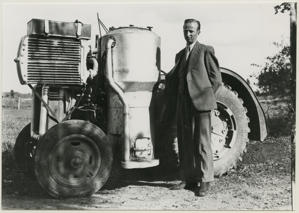 Arvid Engström med gengasaggregat, början av 1940-talet.
