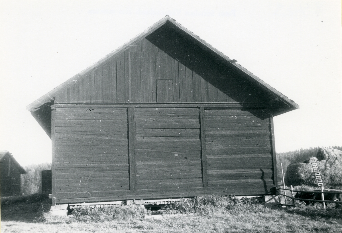 I bakgrunden stå en stege lutad mot en hög med hö.