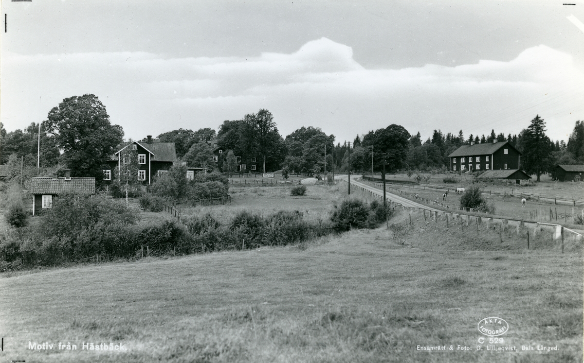 Vykort med Hästbäck från väster, 1950-talet.