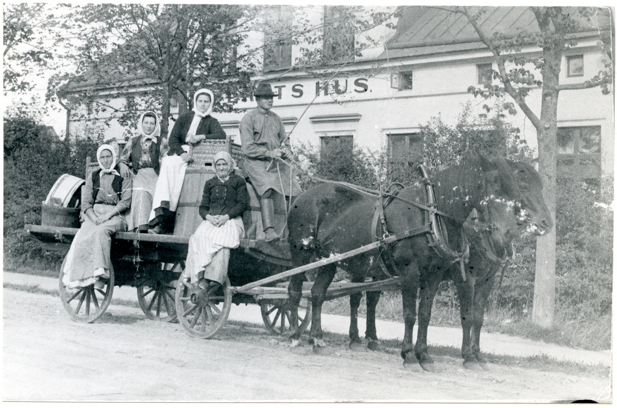 Sällskapet på bilden kom från Tofta och är på väg till Arboga för att klappa kläder, c:a 1910.