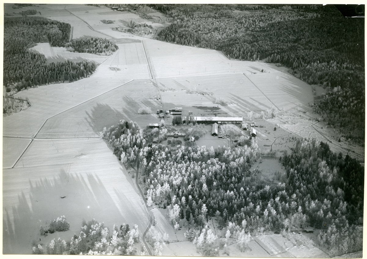 Flygfoto över Stenby jordbruksområde med byggnader. 1935.