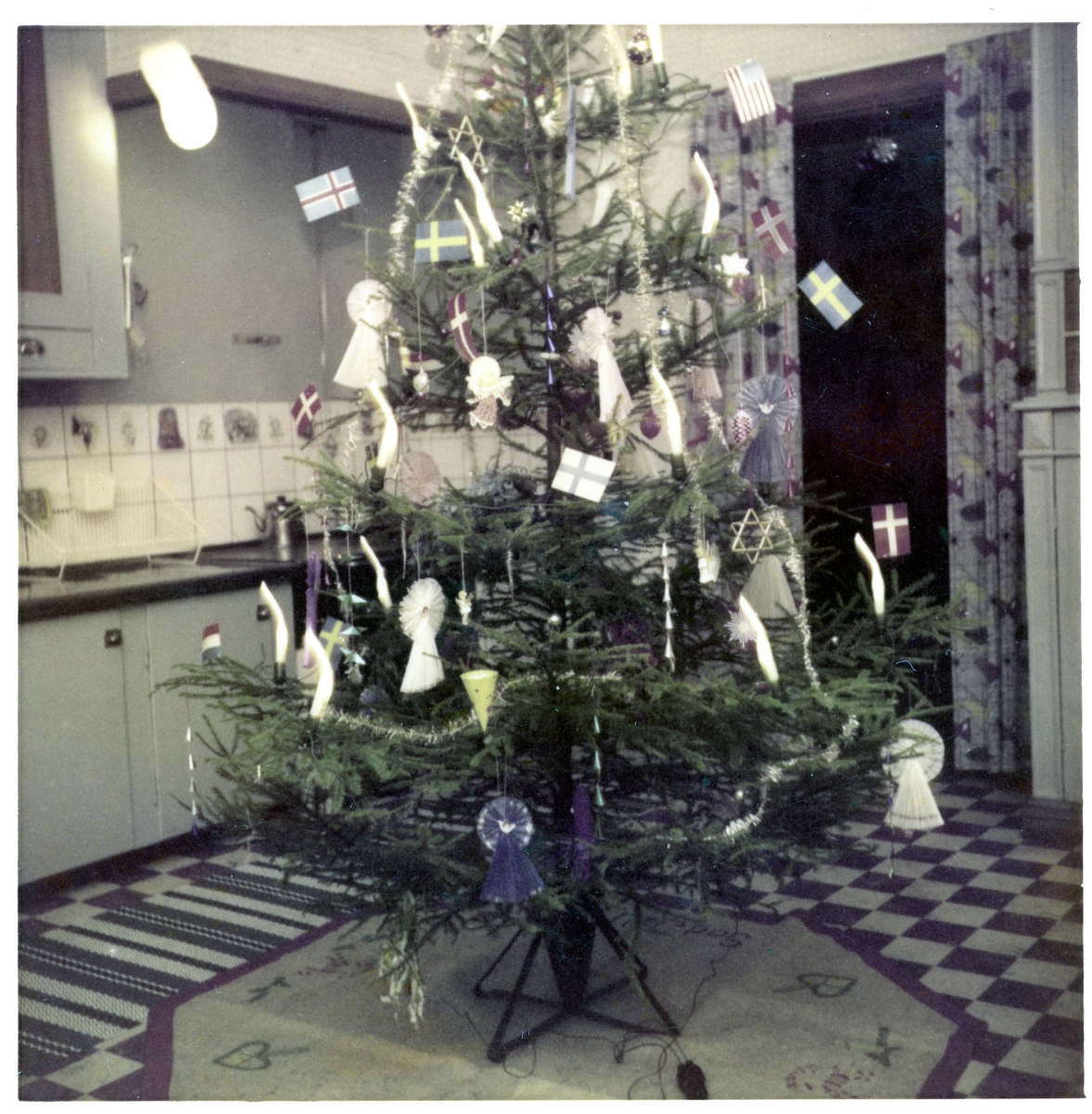 Klädd julgran i köket på Sörberga. Julen 1961.