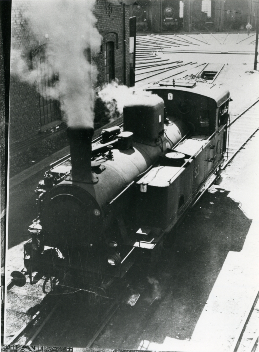 Rykande ånglok framför gamla Lokstallarna på Lögarängen i Västerås.