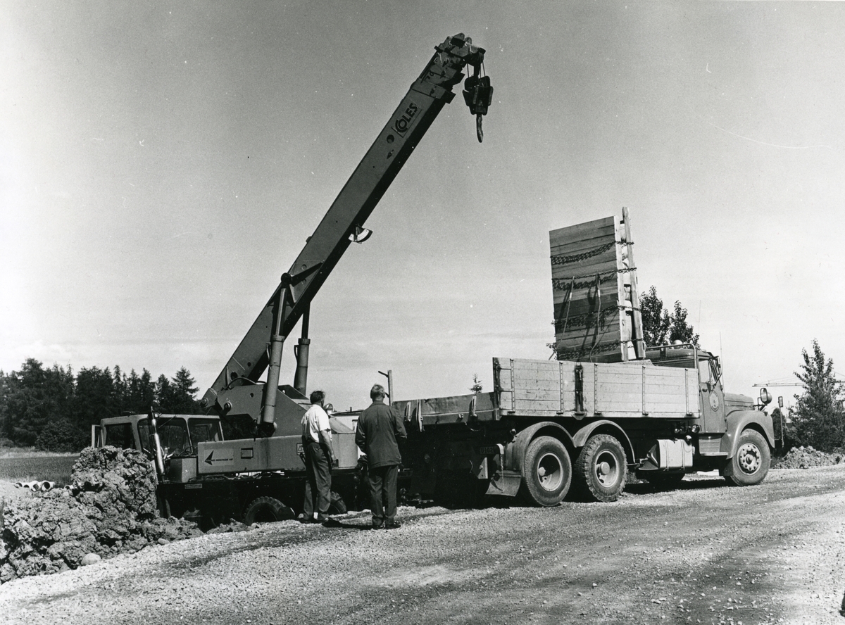Flyttningen av runstenen vid Saltängsbron 9/6 1972.