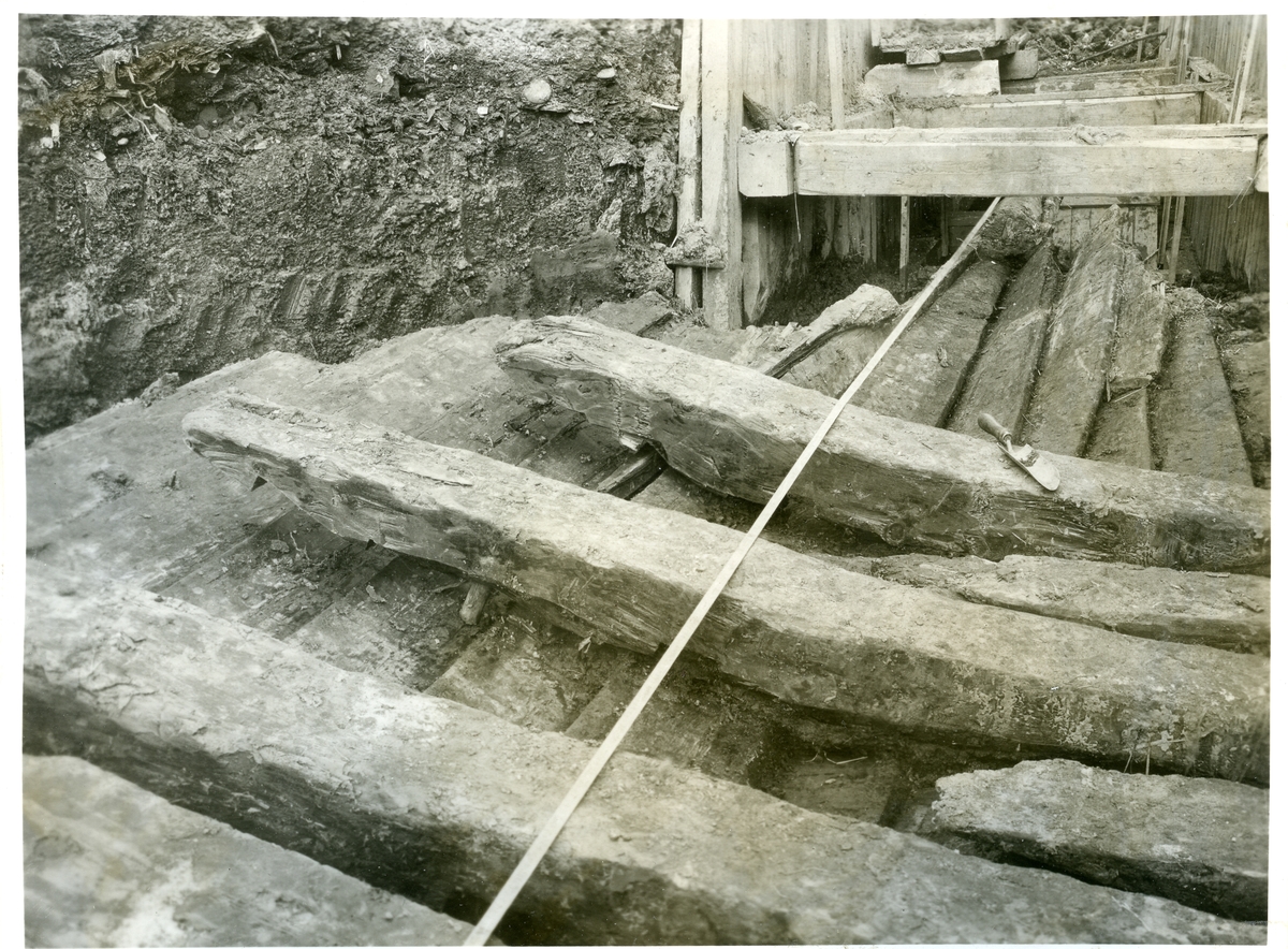 Från utgrävningen av båtfyndet i Gamla hamnen i Västerås, 1935.