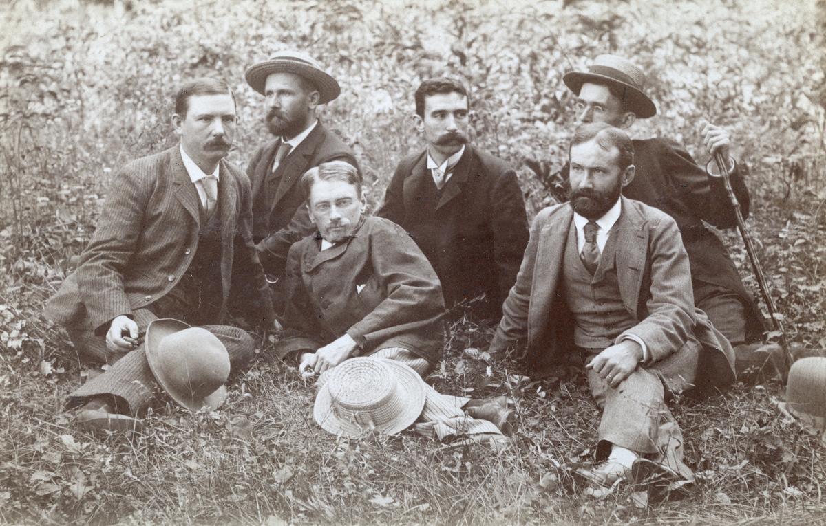 ASEA-ingenjören och uppfinnaren Jonas Wenström sitter i gräset tillsammans med fem amerikanska vänner, någonstans i USA. 1888.