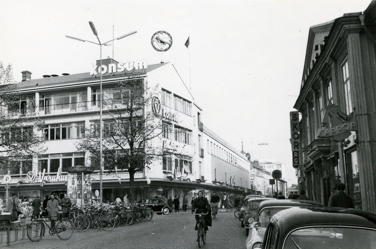 Västerås. Smedjegatan mot öster från korsningen Köpmangatan.