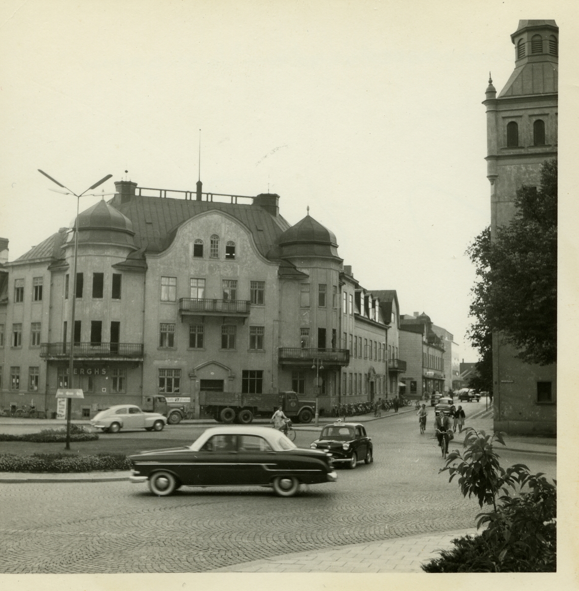 Västerås. Vasagatan mot söder i korsningen med Domkyrkoesplanaden. 1960.