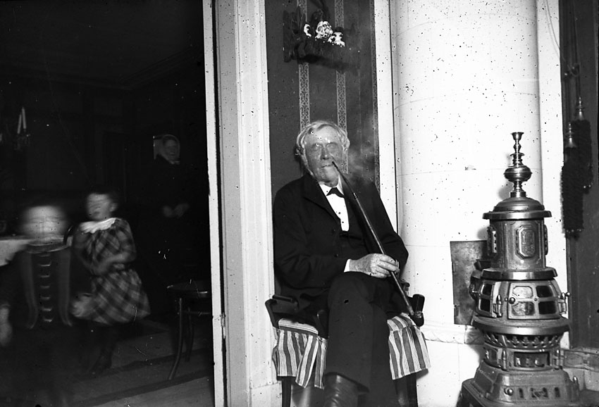 Man rökande långpipa. Västmanland.
