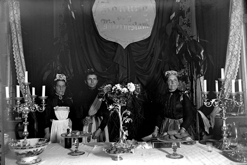 Muntra fruarne, tre kvinnor för "Konung och fädernesland", välgörenhetsförsäljning, Västmanland.