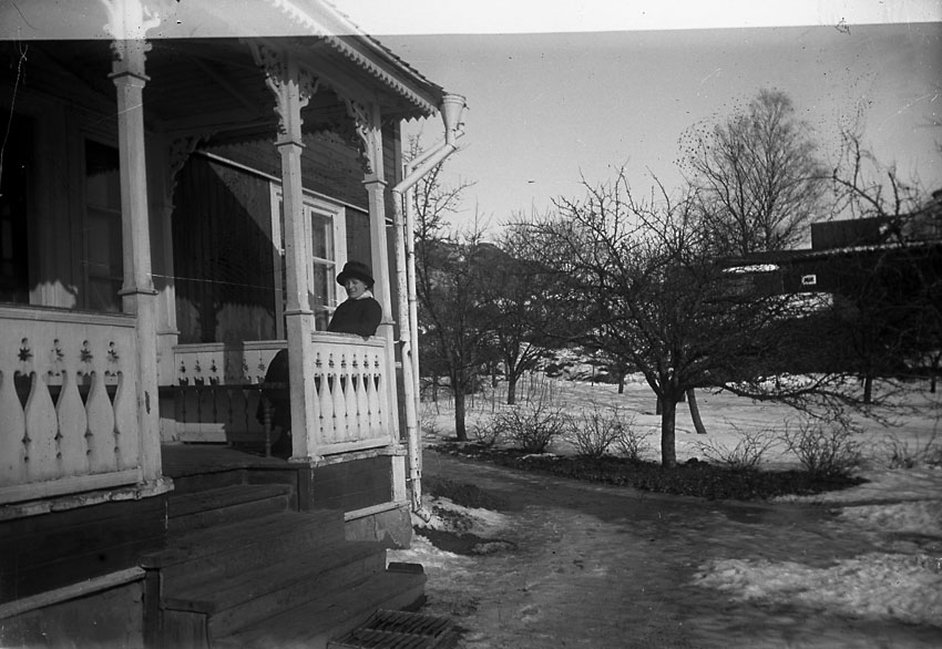 Dam på veranda, Västmanland.