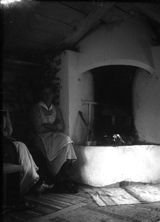 Dam vid öppen spis.