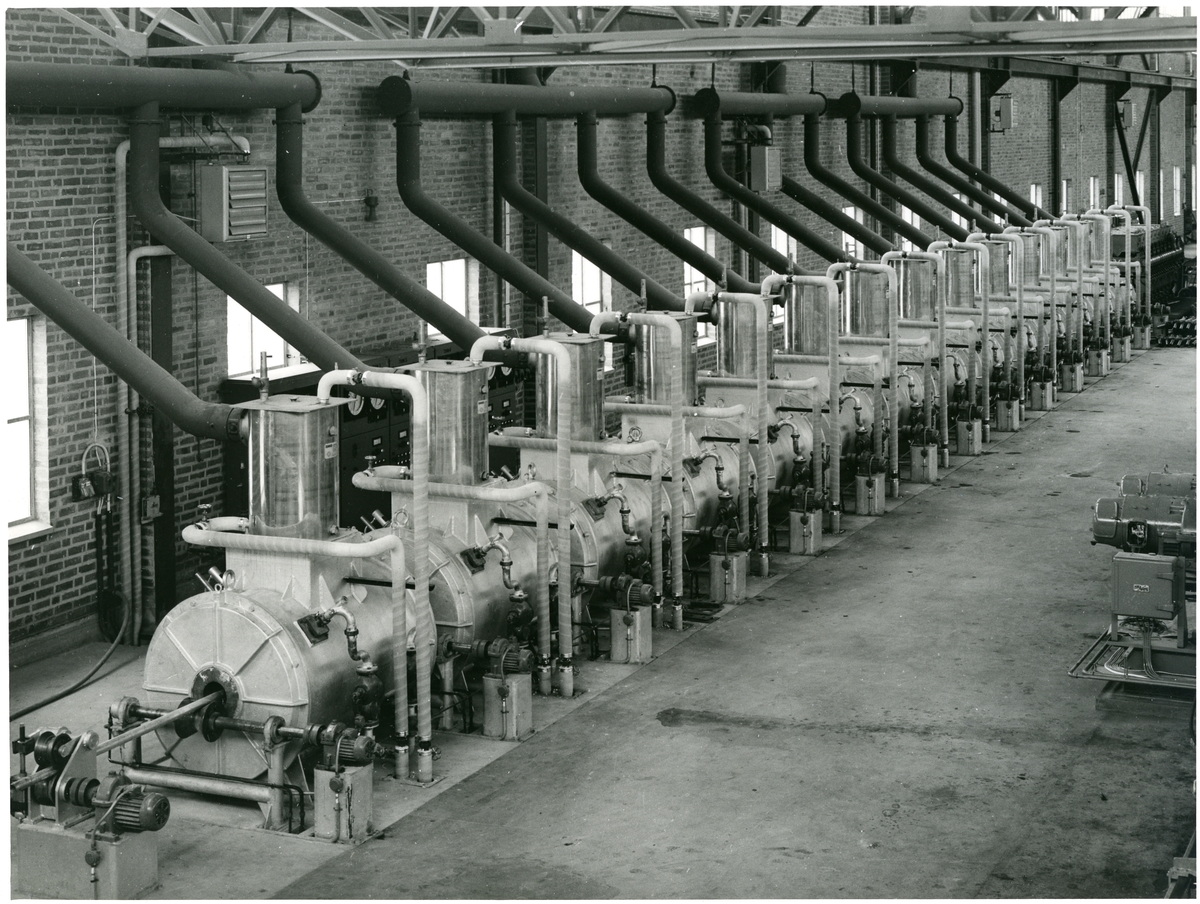 Virsbo bruk. Interiör av rörverket, 1950-talet.