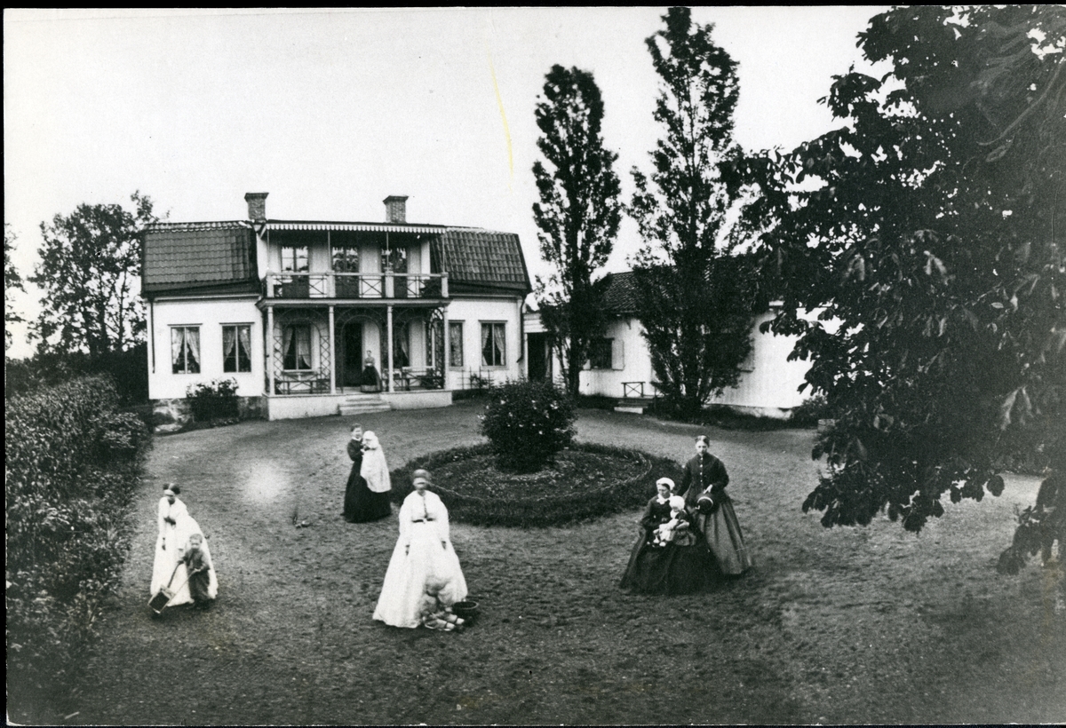 Kvinnor och barn utanför bostad. C:a 1890-1900.