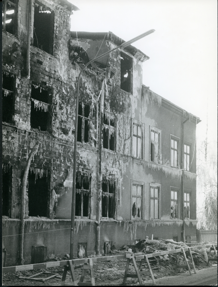 Rivningsbyggnad i korsningen Malmabergsgatan-Lokegatan. 1969.